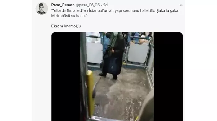 Ekrem İmamoğlu'nun 'Altyapı, su baskınları ve sel sorunlarını çözdük' dediği birçok noktada sel suları akılalmaz noktalara ulaştı. Araçlar yağmur sularına gömülürken trafik kilitlendi, içinde yolcu olan metrobüsleri su bastı. İstanbul'un birçok bölgesinden gelen görüntülerle birlikte sosyal medyada gündem olan İBB Başkanı Ekrem İmamoğlu hakkında da binlerce tweet atıldı.